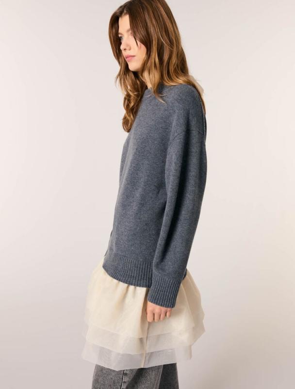 Maje | ROBES Robe bi-matière laine et organza Gris | ecru